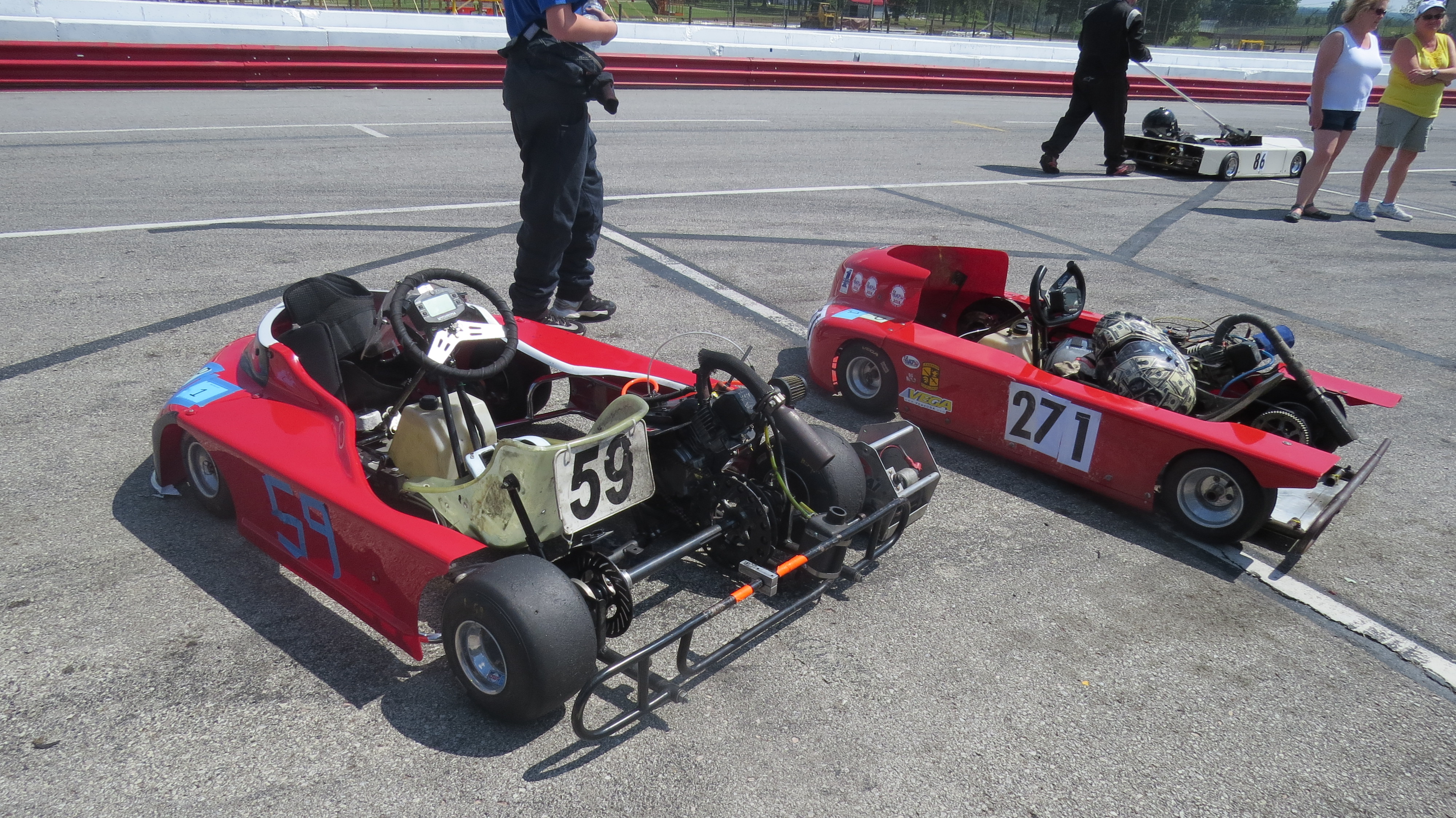 June 16-18 brought us to Mid-Ohio Sportscar Course in Lexington, Ohio for a combined Championship Enduro Series Race 3 and Dart Kart Club Race 2. Dart Kart club hosted this event on Mid-Ohio is a rolling 2.4 mile course. The track is tricky with long fast straights and several challenging corners including a blind downhill off camber and a carousel. Mid-Ohio is also home to a great Indy Car race second only to Road America’s. This being a Dart Kart Club event we needed to follow their rule set which includes using a restrictor on both of his motors slowing him down and annoys him very much.