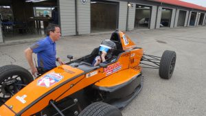 The second day started with another braking session but with only one stop point, Jason had to work pretty hard to find the right touch. Race car brakes are much more finely tuned then kart or even passenger car brakes. Eventually, he was able to lock the breaks up. The next two sessions were lapping with on course feedback followed by a data session. The last sessions introduced starts, while he was familiar with starts from sprint karting he had never done it in a car on a big track. Big track kart races are standing starts and his view from a car was very different. The last session of the day he was able to lap the track for a full 30 minutes. This where the lessons of the past two days started to come together and he became more confident in his car and skills. He was able to put together a string of very consistent laps in the 1 minute 42 second rage. This is a shows that he was at a point where he could start the real work of shaving time off to approach the advanced drivers who are running laps 1 minute 40 second laps.