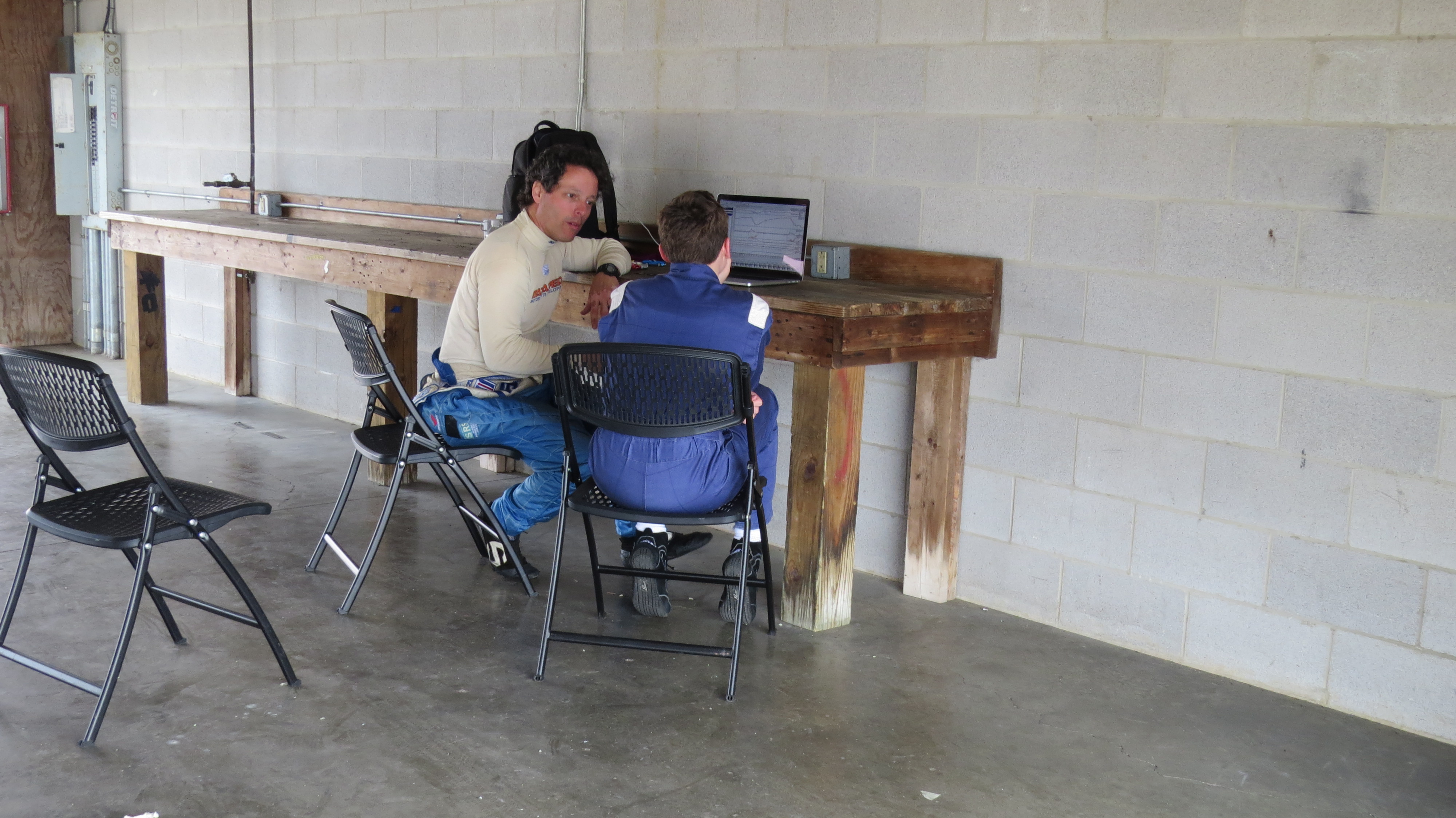 Day one started off with introductions. His instructor was Gerardo Bonilla. Gerardo was a driver for Mazda during their early days with IMSA and raced Indy Lights and is currently a professional driver, coach, and instructor. He and Jason quickly hit if off as they traded racing stories. The initial class time was a great throwback kid kart days as they went over fundamentals: this is the car, this is how you corner, and these are the flags. All good things to review in a new racing situation and it brings the driver focus in an unfamiliar situation. Some of the pictures were the same ones I used as we prepared for his first race as we started kart racing. I was completely comfortable to hand him off to such and experienced and relatable driver and teacher.